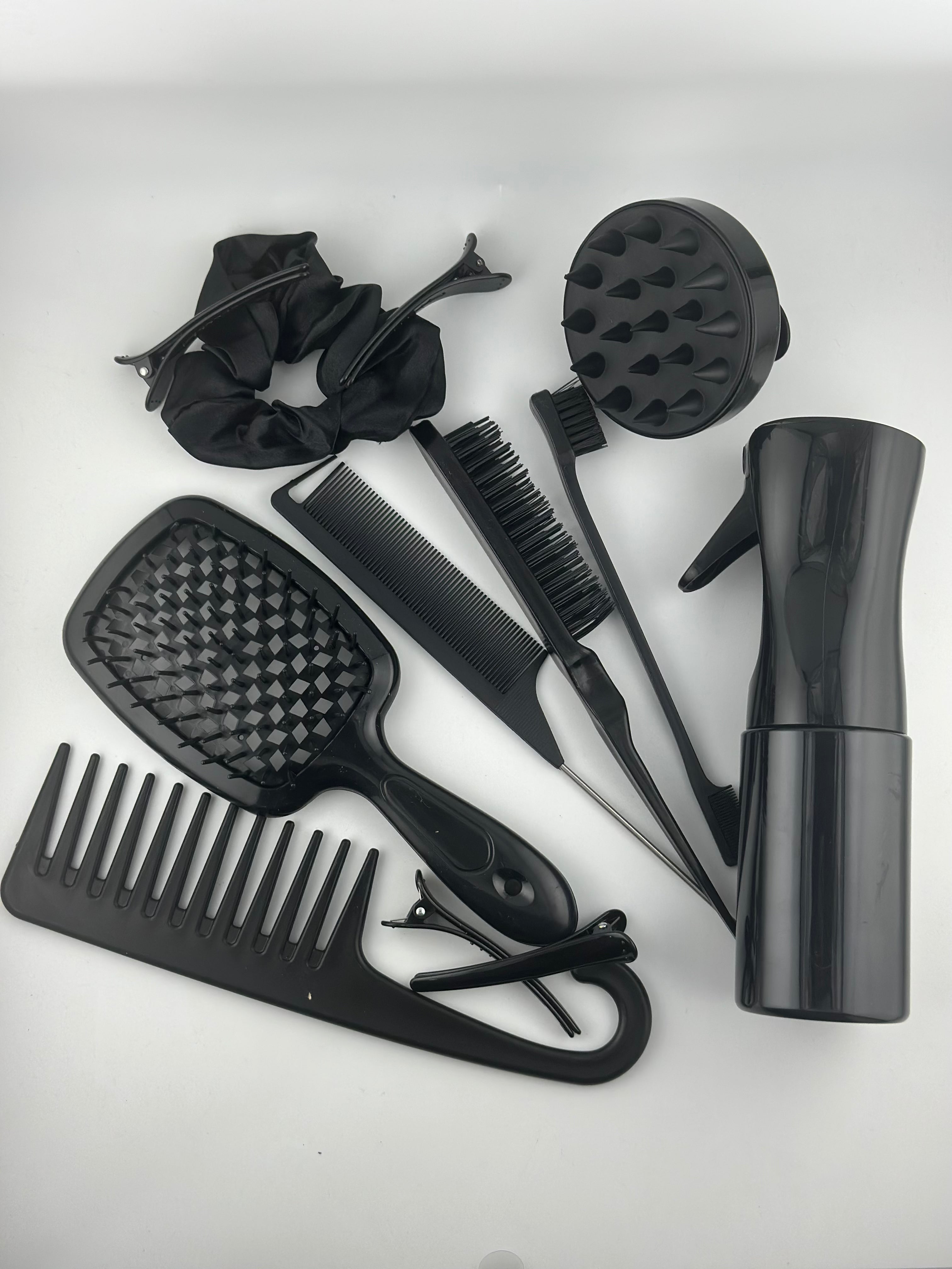 The Black Edit – Hair Styling Essentials SetLevel up your hair game with The Black Edit — a full collection of sleek, all-black tools made to detangle, smooth, and style every strand to perfection. Whether you’re refreshing curls, slicking back a bun, or